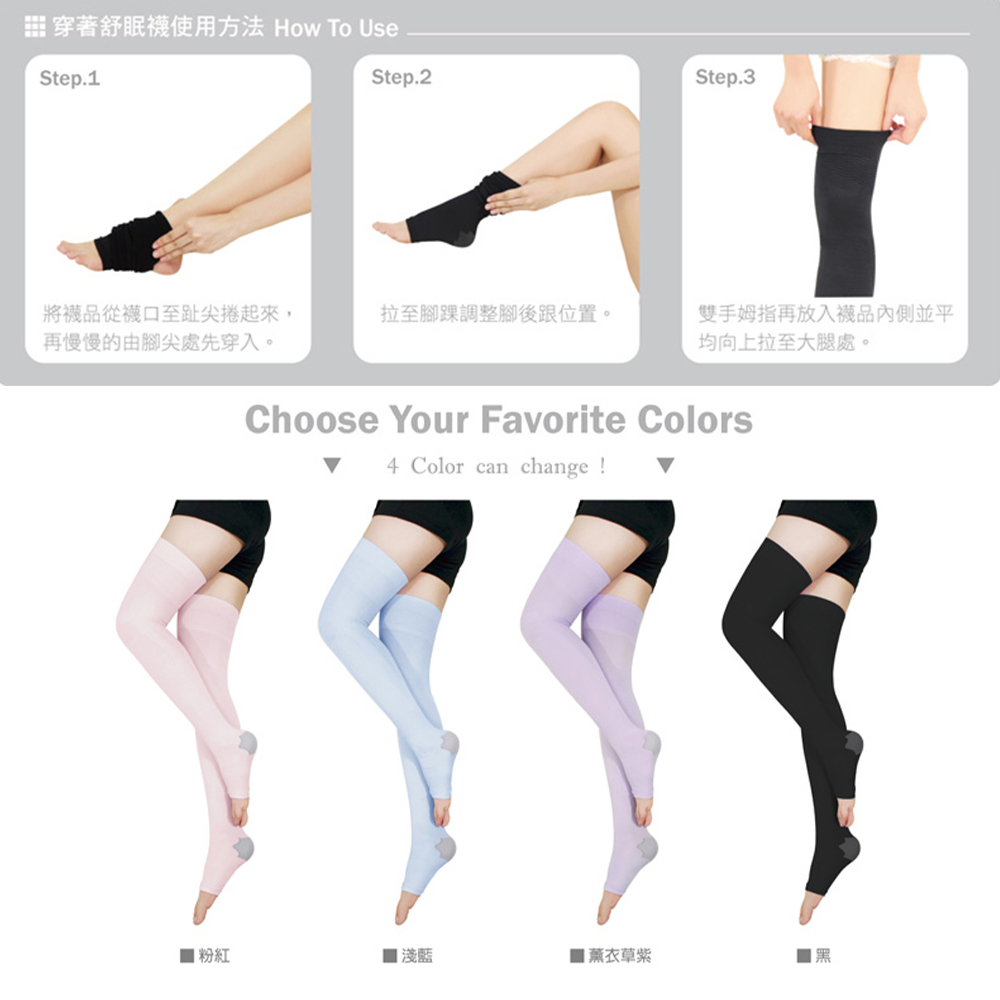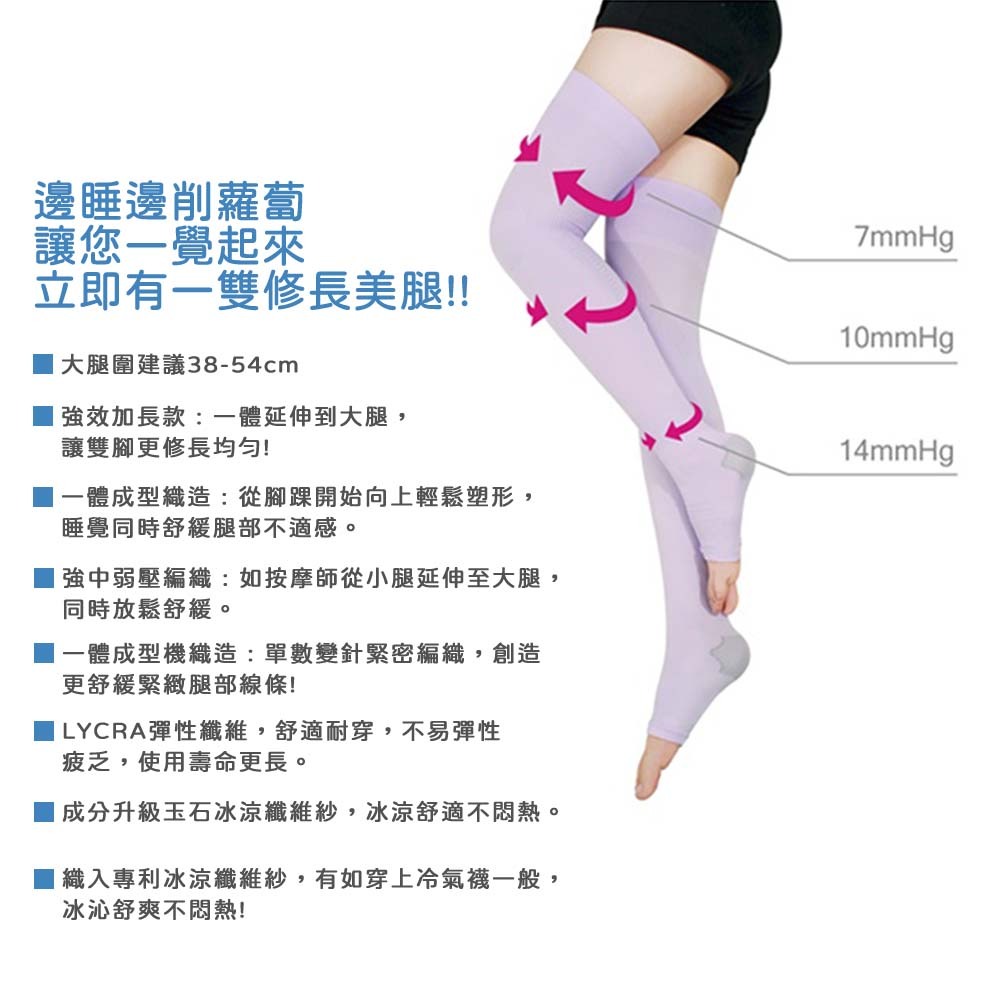 120丹|睡眠3段進階強效特性:全面向上提拉維持腿型,加強形狀特性,同時放鬆舒緩,腳底到大腿,更拉長雙腿勻稱。