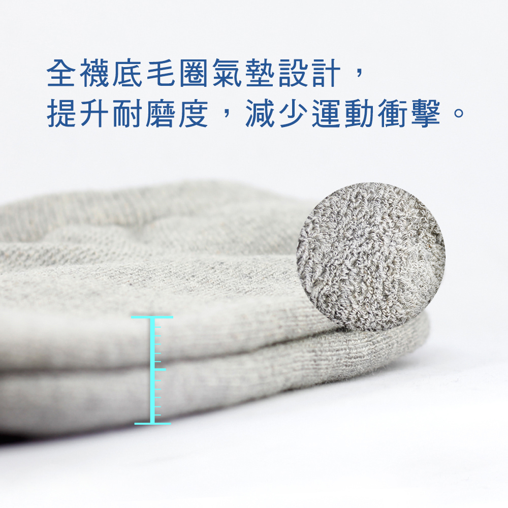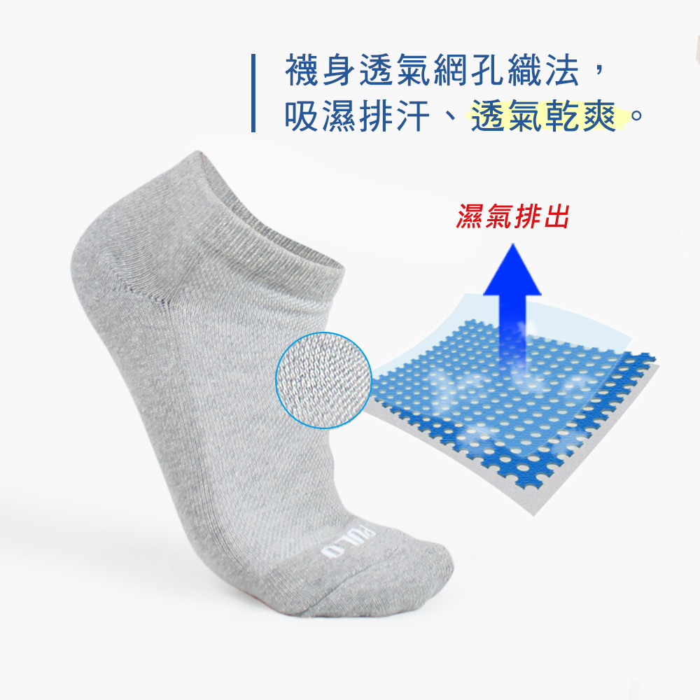 襪底耐磨加厚,精梳棉材質親膚柔軟,透氣網孔織法增加排氣性。