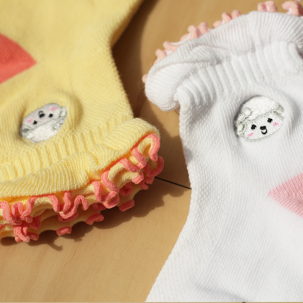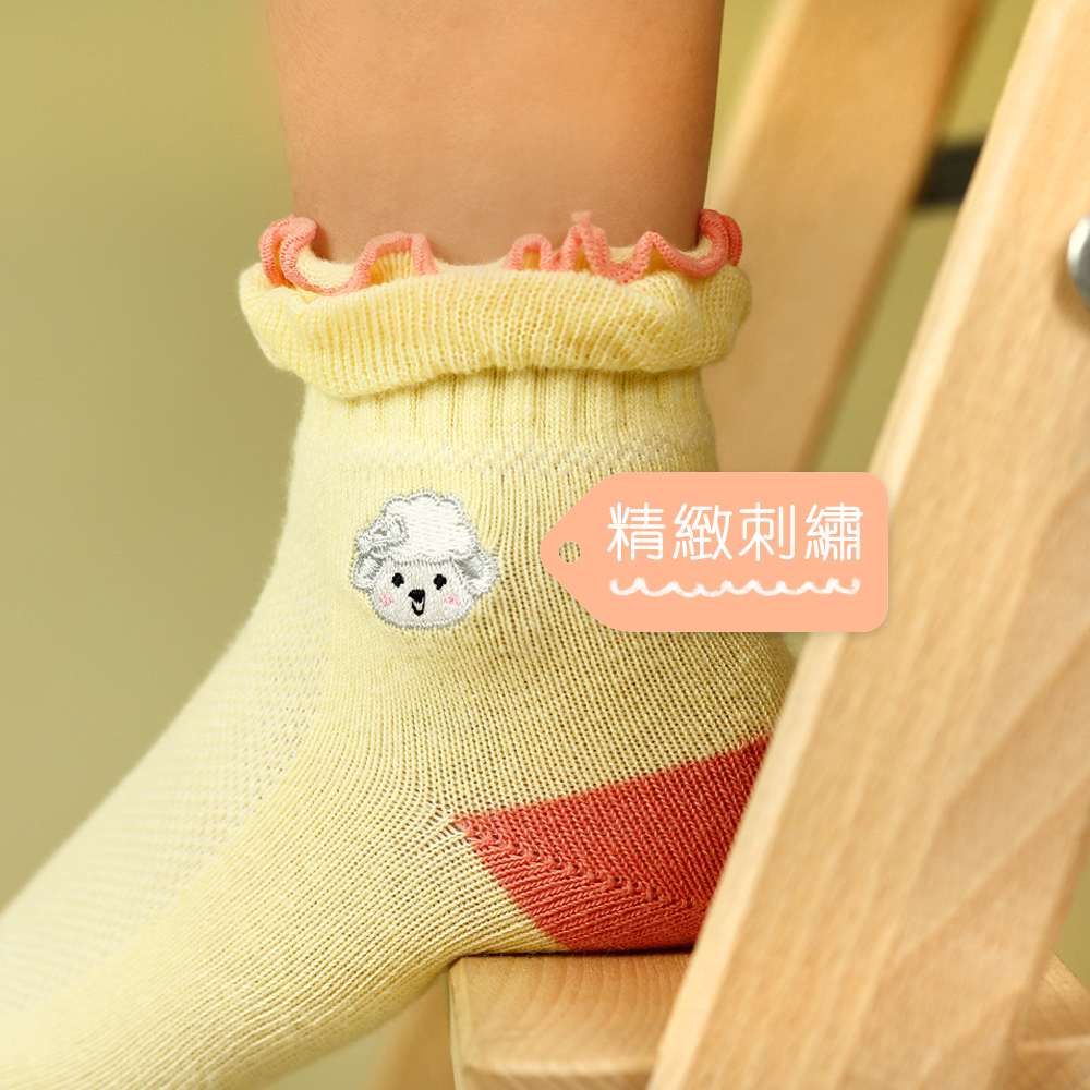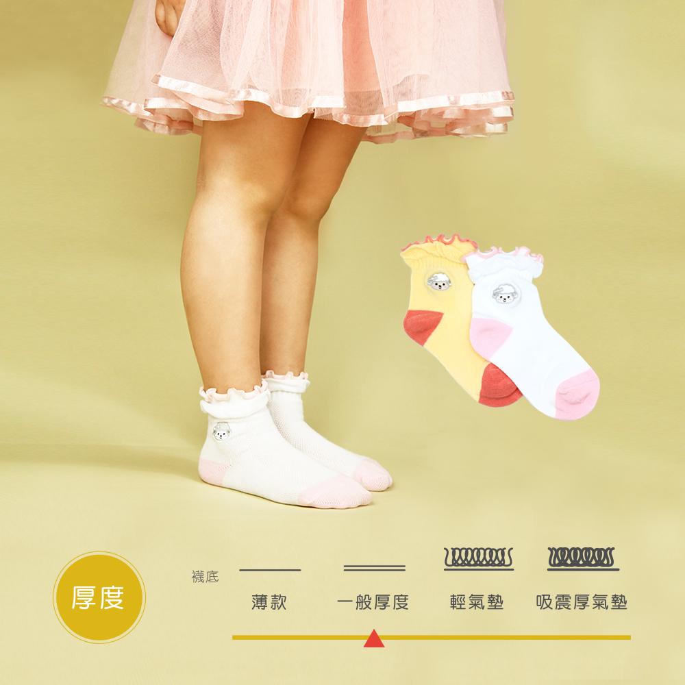 嚴選精梳棉材質,細緻柔軟、乾爽透氣,呵護孩童細緻的肌膚。萊卡彈性纖維,包覆性佳不易鬆脫變形。襪頭平整織法,減少異物感提升穿著舒適度。荷葉邊造型增添甜美可愛氣息!