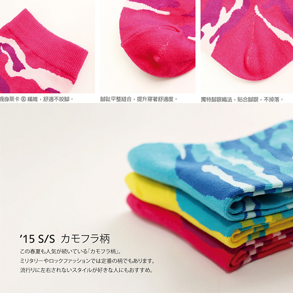 嚴選精梳棉素材,親膚細緻觸感,透氣舒適;使用知名品牌萊卡®彈性纖維,不咬腳、不鬆脫;無氣墊,一般厚度。