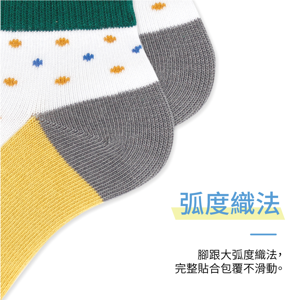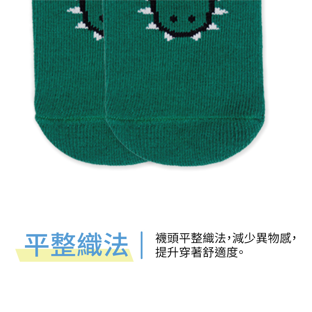 嚴選精梳棉材質,細緻柔軟、乾爽透氣,呵護孩童細緻的肌膚。萊卡彈性纖維,包覆性佳不易鬆脫變形。襪頭平整織法,減少異物感提升穿著舒適度。襪底大面積防滑設計,不易滑動,提升安全貼心度爆表。