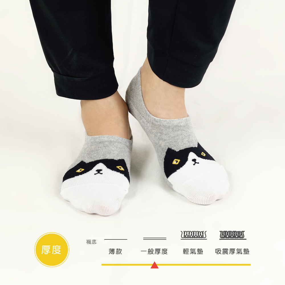 嚴選精梳棉材質,輕膚細緻觸感,透氣舒適;細針織法,輕薄百搭。使用知名品牌萊卡Lycra®彈性纖維,不咬腳。後跟矽膠防滑+獨家多跟織法,不易鬆脫;無氣墊,一般厚度。