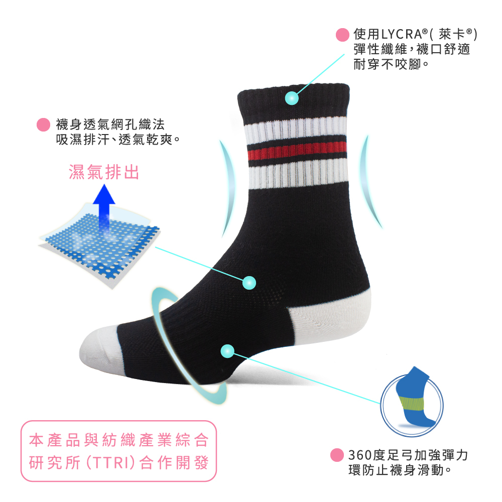 ⭐ 襪身使用網孔織法,加強腳背吸溼排汗,讓雙足更透氣乾爽。