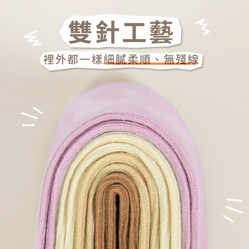 雙針工藝裡外都一樣細膩柔順、無殘線。