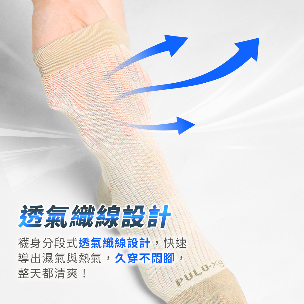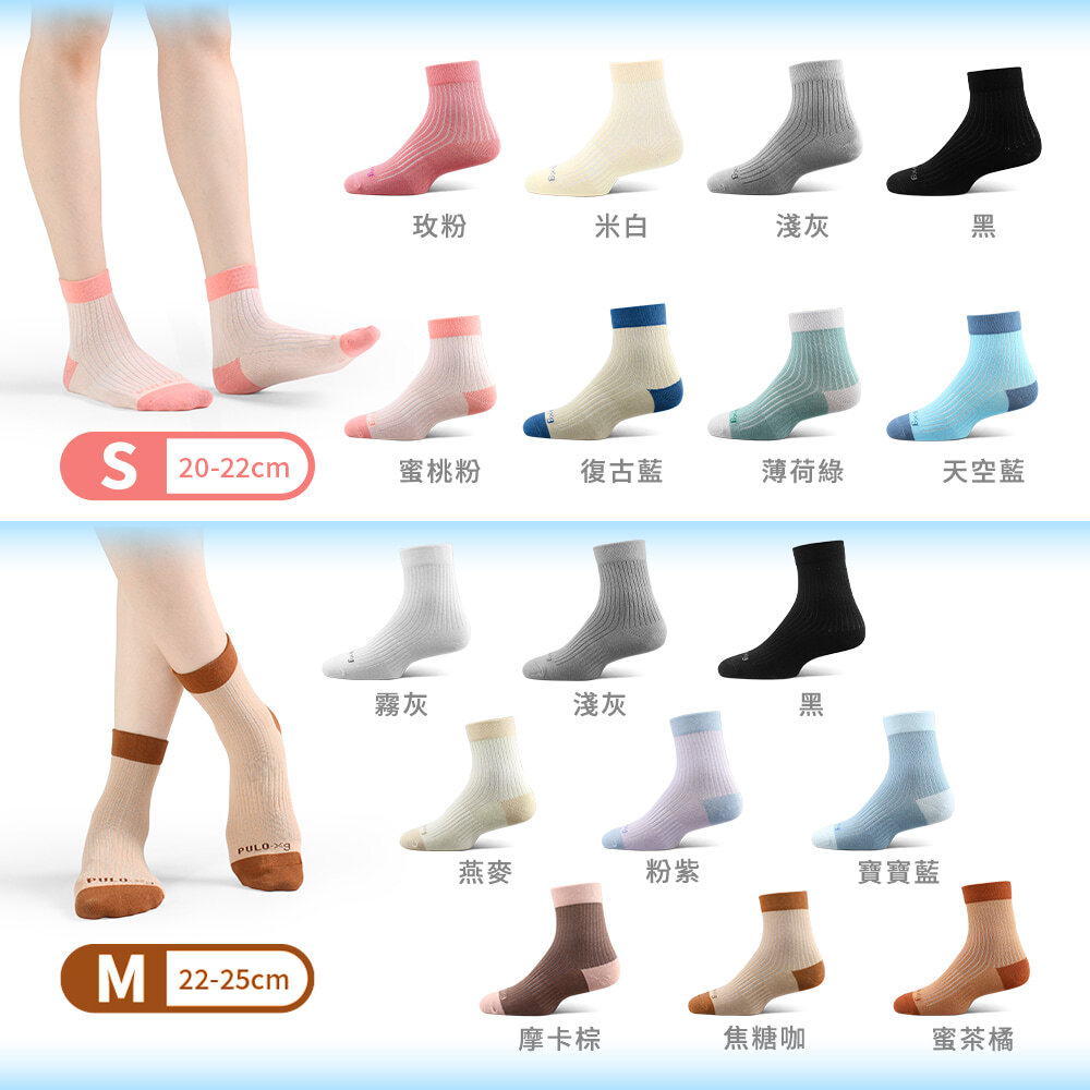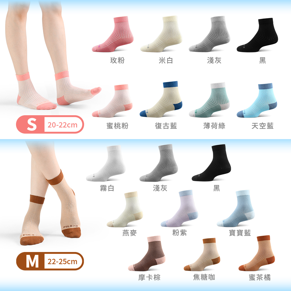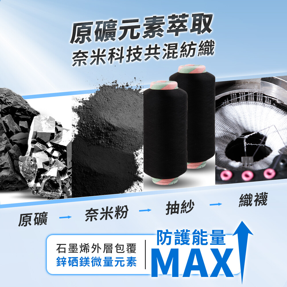 石墨烯+鋅硒鎂微量元素雙效纖維,帶正電能中和細菌,多次水洗,效能不流失。四種尺寸多色選擇,無痕襪口穿整天都舒適。