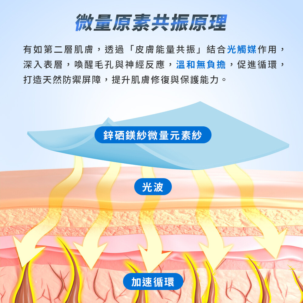 結合光觸媒物理作用,啟動毛孔與神經反應,溫和提升保護力與循環。